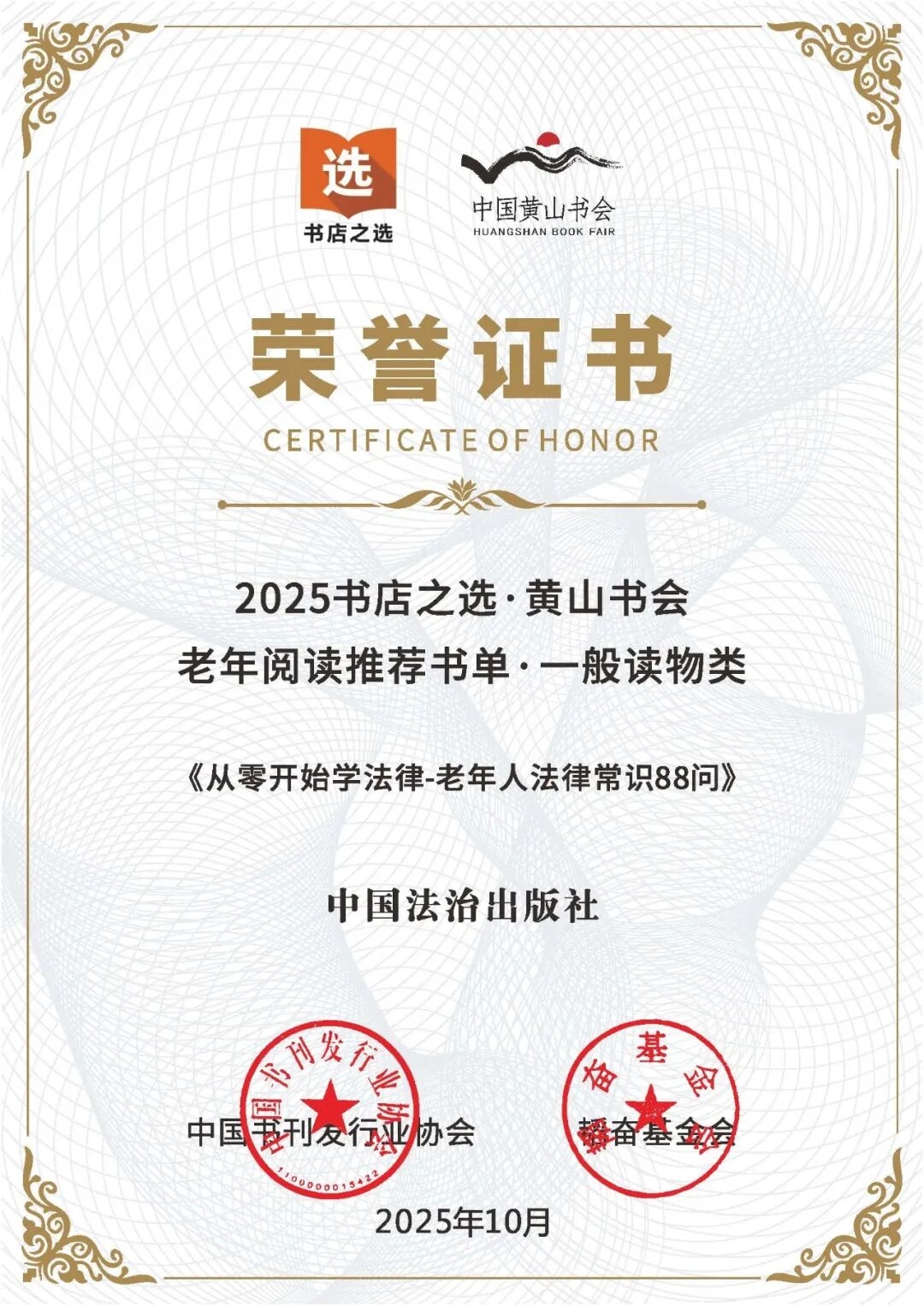 殊荣是认可,更是责任。中国法治出版社将持续聚焦银龄阅读,通过开发更通俗实用的普法读物,并积极探索有声读物、普法视频等多元形式,以更有温度的法治文化作品,为“银龄一族”的幸福生活保驾护航,用法治的力量深情守护最美夕阳红。