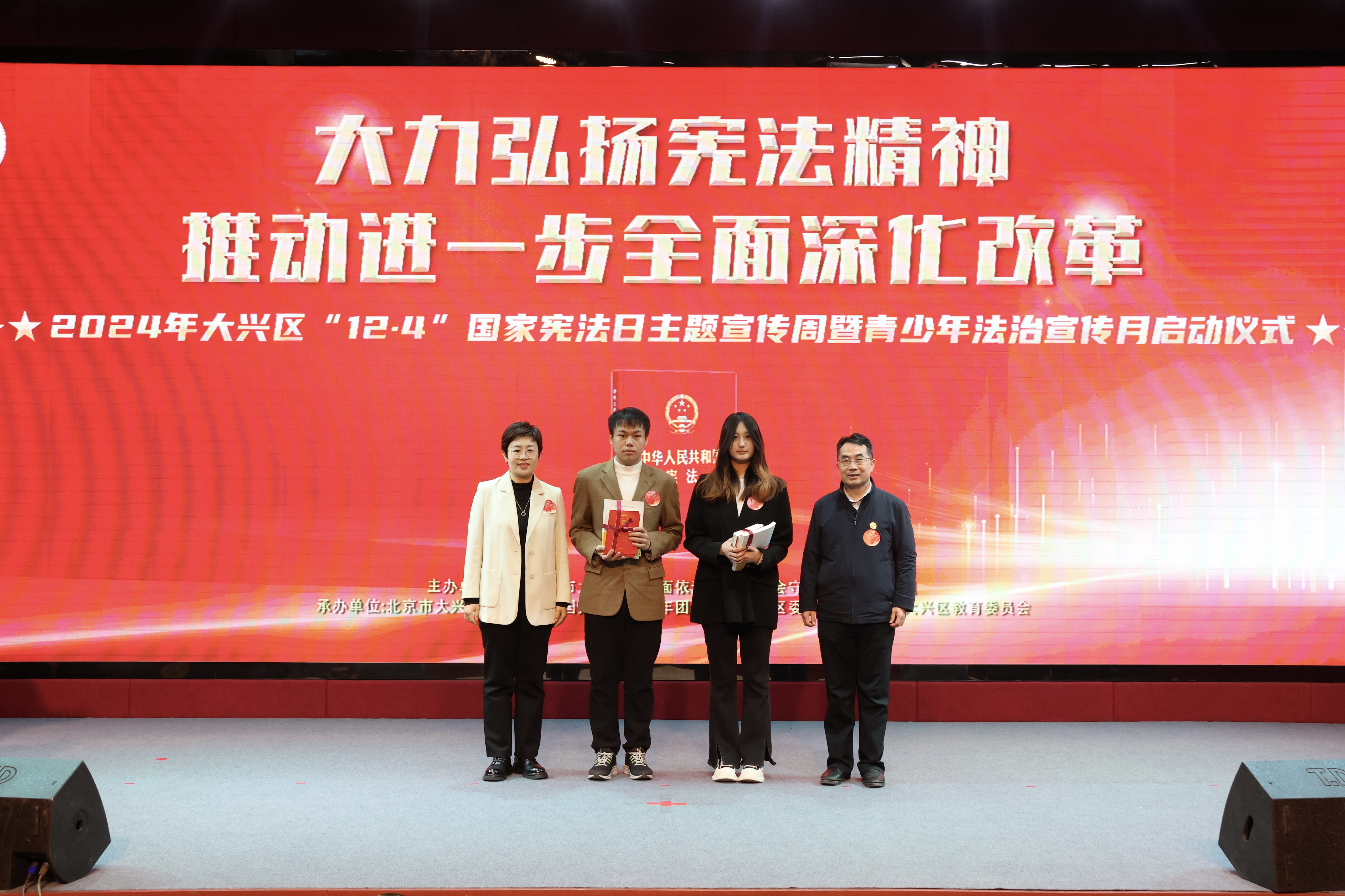 在活动的最后,各位领导共同按下启动键,2024年大兴区“12·4”国家宪法日主题宣传周暨青少年法治宣传月正式启动。