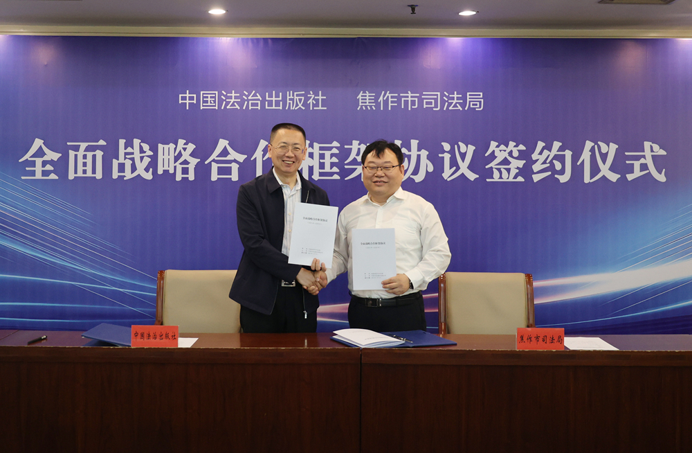中国法治出版社将秉承“工匠精神、创新思维、矢志前行”的企业精神,践行“让法治更有力量”的办社宗旨,以全面战略合作为起点,深入务实高效合作,加强对焦作市依法治市实践经验的总结提炼提升,为拓宽建好法治文化普法宣传、法治宣传“央地”合作新渠道而不懈努力。