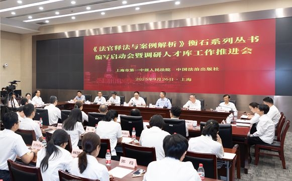 近日,《法官释法与案例解析》衡石系列丛书编写启动会暨调研人才库工作推进会在上海市第一中级人民法院(以下简称上海一中院)召开。上海一中院党组书记、院长吴金水,党组成员、副院长奚雪峰,党组成员、政治部主任张佳杰,审判委员会专职委员周峰,审判委员会专职委员肖晚祥,中国法治出版社总编辑、总经理王磊出席会议。双方签署框架合作协议,标志着司法实践与法治传播深度融合迈入新阶段,为服务中国法治实践注入全新动能。