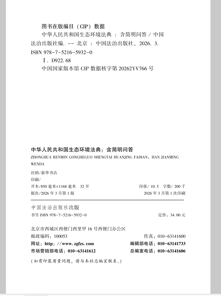 编纂生态环境法典,是贯彻落实习近平生态文明思想,推进人与自然和谐共生的现代化的必然要求;是完善中国特色社会主义法治体系,推进生态环境领域治理体系和治理能力现代化的必要举措;是贯彻新发展理念,同步推进高质量发展与高水平保护的客观要求;是坚持以人民为中心的发展思想,增进民生福祉的必然要求。本书以《中华人民共和国生态环境法典》条文为基础,增加重点内容相关实用简明问答,希望本书能够发挥作用,帮助广大读者更好学习、掌握《中华人民共和国生态环境法典》。