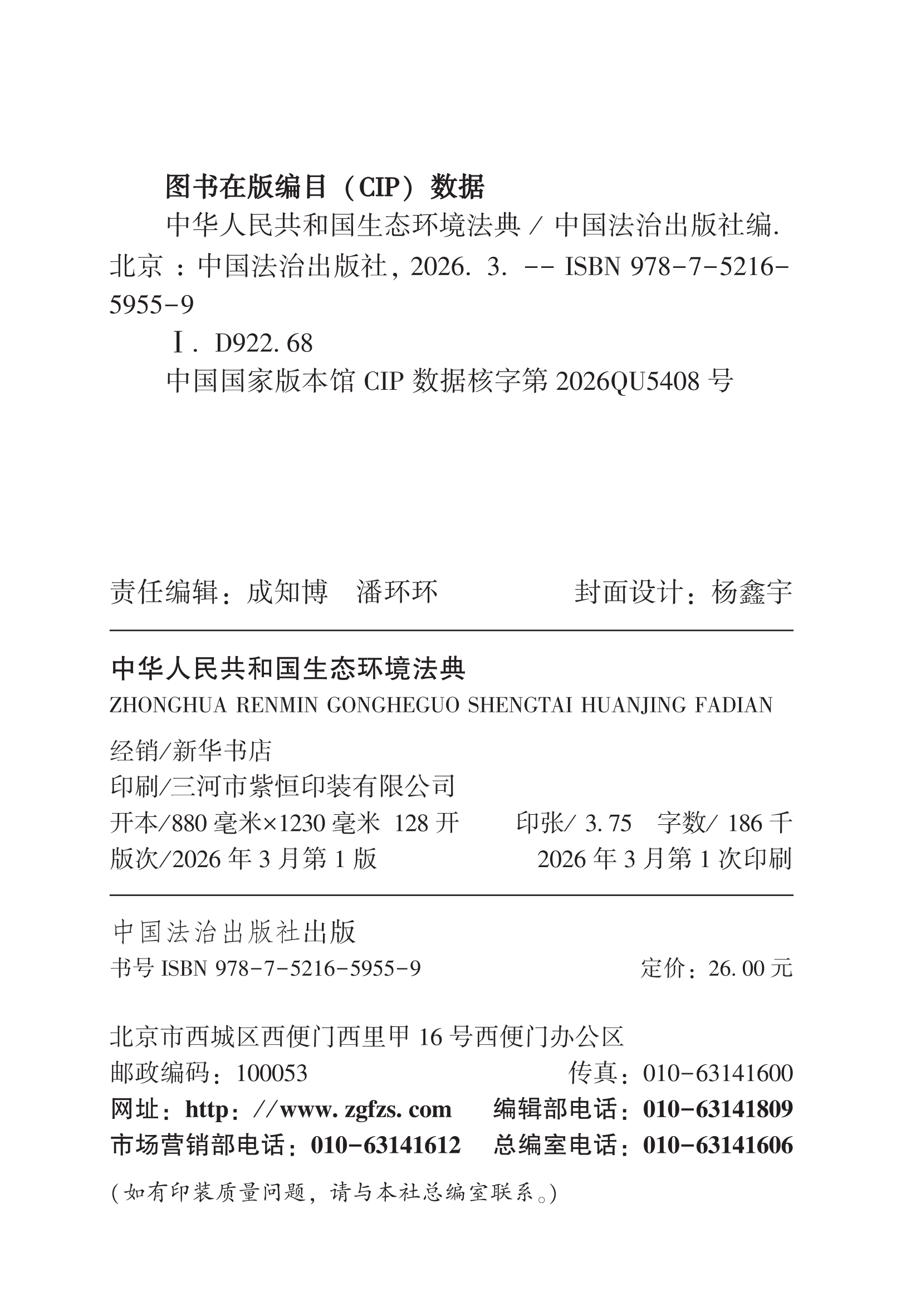 2026年3月12日,第十四届全国人大四次会议表决通过《中华人民共和国生态环境法典》。这是我国继《中华人民共和国民法典》之后,第二部以“法典”命名的法律。它将污染防治、生态保护、绿色低碳发展等法律制度,统一纳入法治框架,实现生态环境领域的制度集成、体系优化,是一部具有中国特色、体现时代特点、反映人民意愿、系统规范协调的生态环境法典。本书采用128开小巧便携开本,方便法律从业者、执法人员、法学学生及广大公民随身携带与快速查阅,是随时随地学习、参考,是普及生态环境法律知识、提升公众法律意识的理想读物。