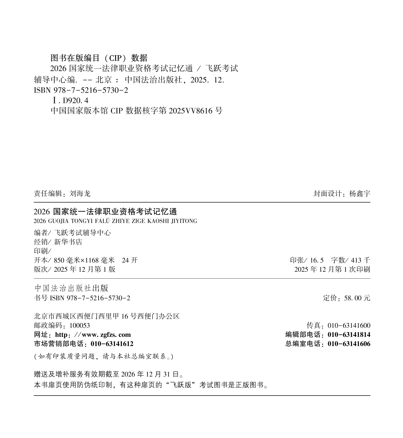 《国家统一法律职业资格考试记忆通》的前身是飞跃考试辅导中心于2006年推出的《司法考试记忆通》。作为一本连续热销多年的考试记忆类图书,本书的制胜秘诀是什么呢?