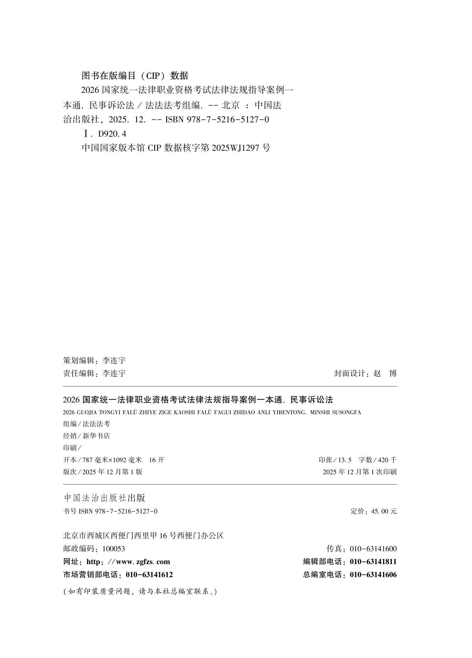 本书虽以法律职业资格考试为核心定位,但在内容编撰中始终坚守“专业深耕、实用导向”原则,其编排逻辑与内容体系亦高度适配法学学习与法律实务双重场景,既是法考应试的必备工具书,亦是法学学习、法律实务工作的得力助手。