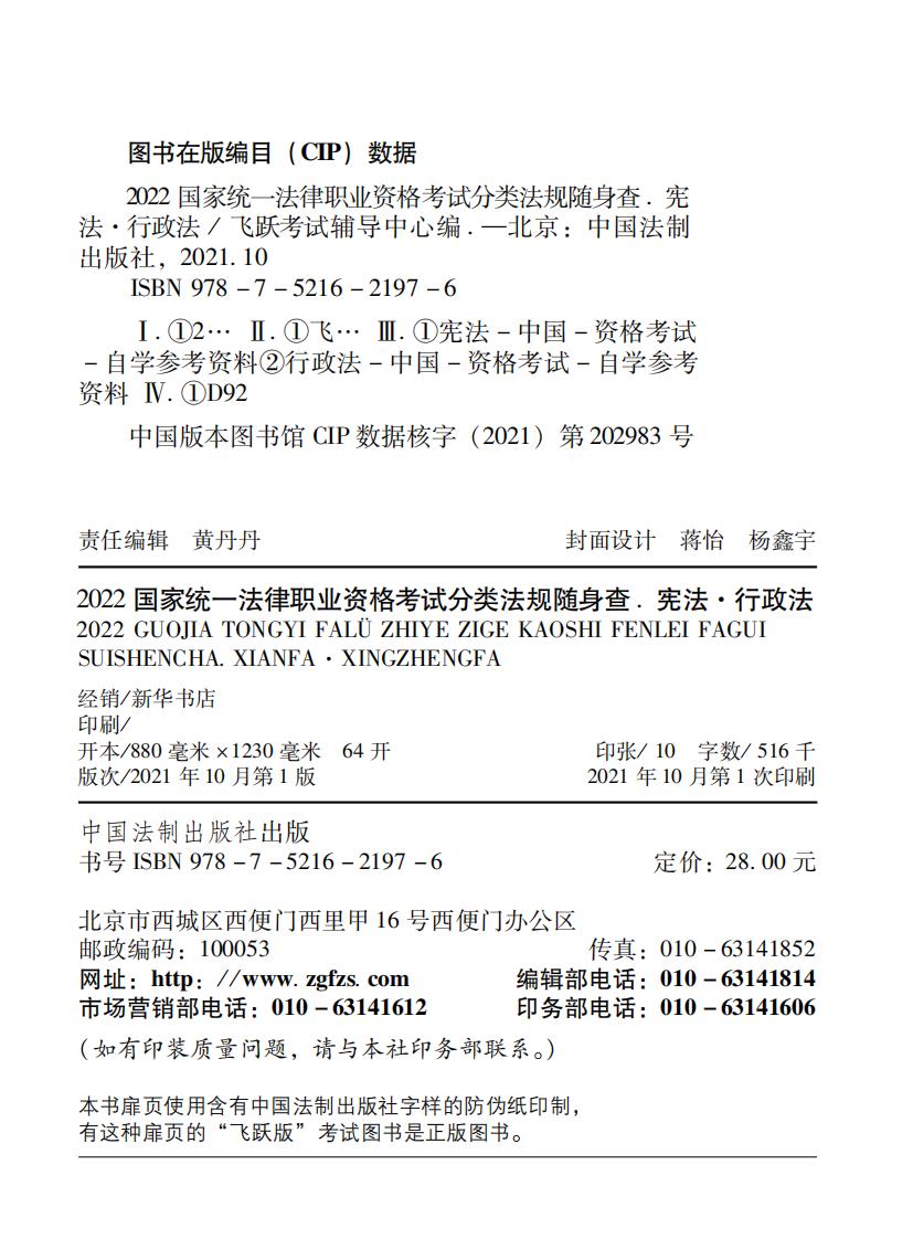 2022国家统一法律职业资格考试分类法规随身查——宪法•行政法【2022飞跃版法考法规随身查】