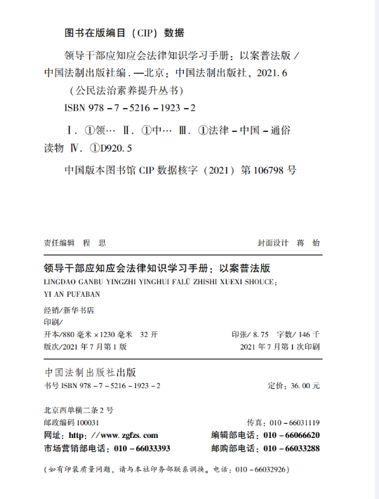 习近平同志在中央全面依法治国工作会议上强调要坚持抓住领导干部这个“关键少数”。各级领导干部要坚决贯彻落实党中央关于全面依法治国的重大决策部署,带头尊崇法治、敬畏法律,了解法律、掌握法律,不断提高运用法治思维和法治方式深化改革、推动发展、化解矛盾、维护稳定、应对风险的能力,做尊法学法守法用法的模范。为了配合广大领导干部学习和了解相关法律知识,我们特别编写了《领导干部应知应会法律知识学习手册》一书。 我们针对领导干部选取了常见案例,用简练、通俗、生动的语言加以整理汇编,使读者通过便捷的方式收获更加全面实用的相关法律知识。