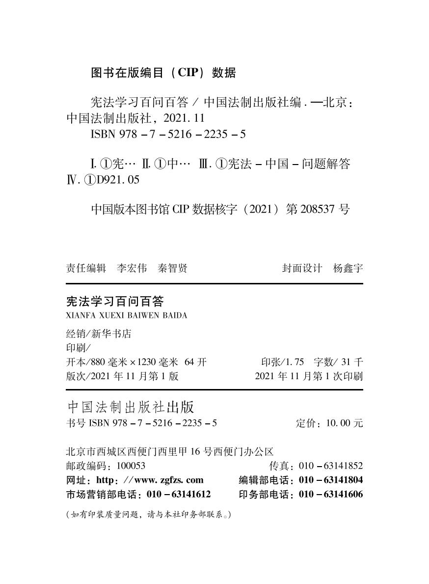 宪法是国家的根本法,是治国安邦的总章程,是党和人民意志的集中体现,具有最高的法律地位、法律权威、法律效力。宪法的生命在于实施,宪法的权威也在于实施。更好发挥宪法在新时代坚持和发展中国特色社会主义、推进全面依法治国中的重大作用,需要学习宪法、尊崇宪法、遵守宪法、维护宪法、运用宪法,在全社会弘扬宪法精神。“八五”普法规划也明确指出要在全社会深入持久开展宪法宣传教育活动。为了帮助广大群众学习宪法尊崇宪法,让宪法走入人民群众心中,我们特编写了本书。本书从宪法的条文中,精选了148个问题进行解答,帮助广大人民群众轻松、快速学习应知应会的宪法知识。